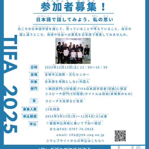 第29回宝塚市外国人日本語スピーチ大会(12月13日)出場者募集!