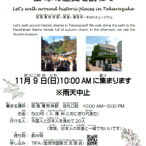 日本文化を楽しむ会「宝塚の歴史を訪ねて」11月9日