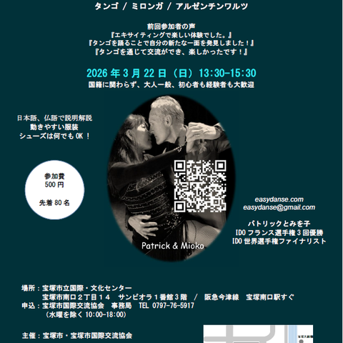 多文化交流ひろば「タンゴ探訪・体験 Vol.2」3月22日