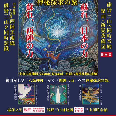 岡本太郎・最後の弟子「塩澤文男の神秘探求の旅」展で原画と西陣美術織で展覧いたします。