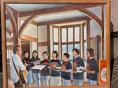 絵画、人形などの美術作品展示。ギャラリー内でアイリッシュハープやベルなどの演奏もあります。