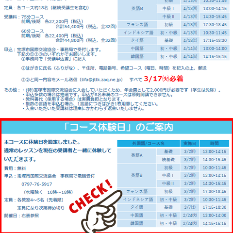 2026年度前期外国語コミュニケーション教室の受講者を募集するにあたり、各コース体験会を実施します。 ...