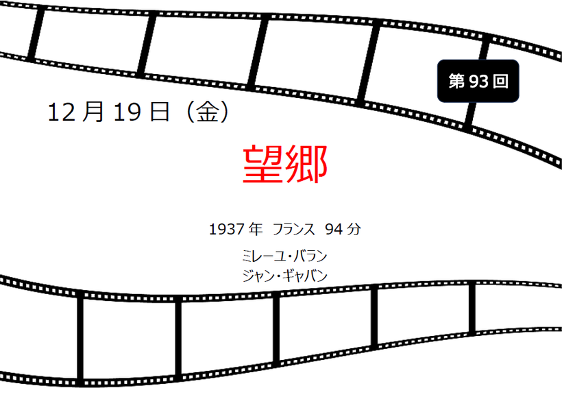 2025年10月20日(月) イベント情報 < イベント/お知らせ(ブログ) 懐かしの名画劇場 12月19日 <無料> 開催日 12月19日(金) 上映映画 「望郷」1937年 / フランス / 94分 開場 12:45~ 時間 13:00~ 参加費 無料 定員 40名(先着順) 場所 国際・文化センター 小ホール 要申込 12月12日 10時より受付 0797-76-5917 12月19日(金)13:00~ 無料 懐かしい映画を観ませんか? 「望郷」1937年 / フランス / 94分