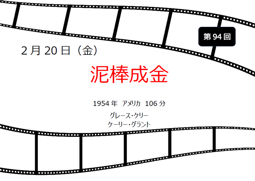 2025年12月20日(土) イベント情報 < イベント/お知らせ(ブログ) 懐かしの名画劇場 2月20日 <無料> 開催日 2月20日(金) 上映映画 「泥棒成金」1954年 / アメリカ / 106分 開場 12:45~ 時間 13:00~ 参加費 無料 定員 40名(先着順) 場所 国際・文化センター 小ホール 要申込 2月13日 10時より受付 0797-76-5917 2月20日(金)13:00~ 無料 懐かしい映画を観ませんか? 「泥棒成金」1954年 / アメリカ / 106分