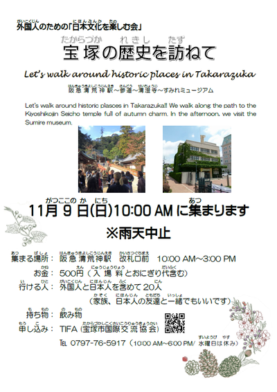 日本文化を楽しむ会「宝塚の歴史を訪ねて」11月9日