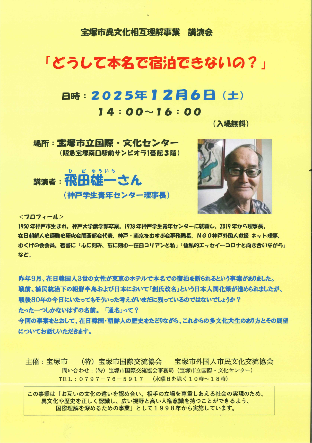 今回の事案をとおして、在日韓国・朝鮮人の歴史をたどりながら、これからの多文化共生のあり方とその展望についてお話しいただきます。