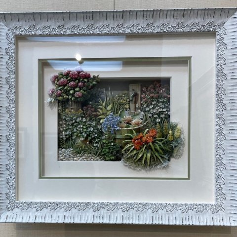 プリントをカットして積み上げ立体感を出す3Dアートです。今回は3年ぶりの作品展となります。ベテラン...