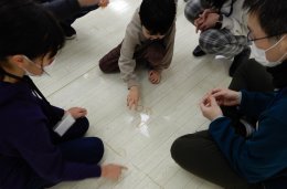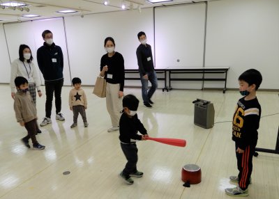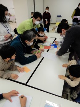 どの遊びも楽しく、特に2は子どもたちがカメの卵を必死に守って盛り上がっていました。体を動かして暖かくなったあとは、折り紙で手裏剣を作りました。お父さんたちが昔を思い出して子どもたちに手順を教えたり、参加者同士がおしゃべりしたりして楽しんでいました。