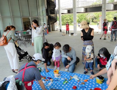 前回に引き続きボランティアグループの「ランチボックス」さんに催し物を提供して頂きました。自然の竹を使った「水鉄砲工作」や、「スパーボールすくい」、「お魚釣り」、「的あて」、「お手玉乗せ」、「輪投げ」などのゲームに、「ケンケンパー」など、日本の初夏の縁日の気分を味わうことができました。