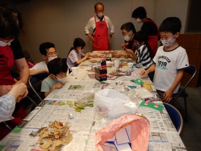 小ホールは子ども向けに工作と公演をランチボックスさんにして頂きました。工作は「ラミネートを使った工作」「牛乳パックを使ったドローン」「紙トンボ」「紙コップを使ったけん玉」を用意して頂き、子どもとお父さんが熱心に作っていました。