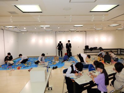 2023年04月15日(土) 活動報告(行事報告) < イベント/お知らせ(ブログ) 「なないろルーツ」4月15日 雲雀丘学園 鉄道研究部の中学・高校生に来ていただき、プラレール遊びとペーパークラフトをしました。たくさんのレールをつなぎ合わせ電車を走らせたり、電車が印刷してある用紙に好きな色を塗ってオリジナルのラッピング電車を作ったりしました。その様子を見ながら、親はおしゃべりして気分転換をしていました。片づける時間になって、帰りたくないと言い出す子どもがいたくらい、プラレール遊びを十分に楽しむことができました。
