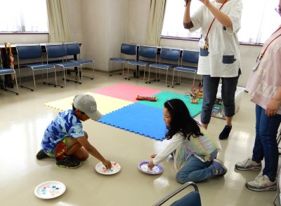 2024年05月21日(火) 活動報告(行事報告) < イベント/お知らせ(ブログ) 「なないろルーツ」5月18日 野上児童館の職員さんに来て頂きました。 今回は、アメリカ、ザンビアの2家族だけでした。職員さんと紙皿こまを作ったり、児童館のおもちゃで遊んだり、仲良し小学生コンビで遊んでいました。