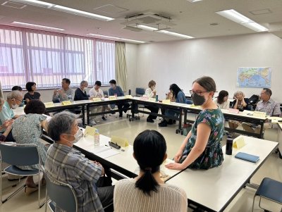 今回のグループ(3名/組)討論の議題は「思い出に残るメディア」。各グループの討議の後、代表者より発表。連日の猛暑やお盆前ということもあり、人数は少し少なかったものの、小学生の参加もあり、和気あいあいと開催することができました。