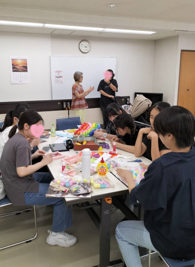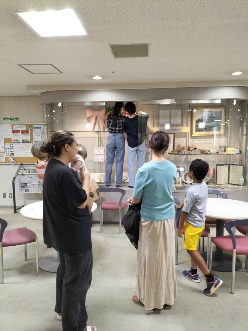 2024年10月07日(月) 活動報告(行事報告) < イベント/お知らせ(ブログ) 「なないろルーツ」9月28日 今回は2組の親子の参加がありました。 センター内のショーケースの飾り付けを小林聖心女学院の高校生ボランティアに手伝ってもらいました。