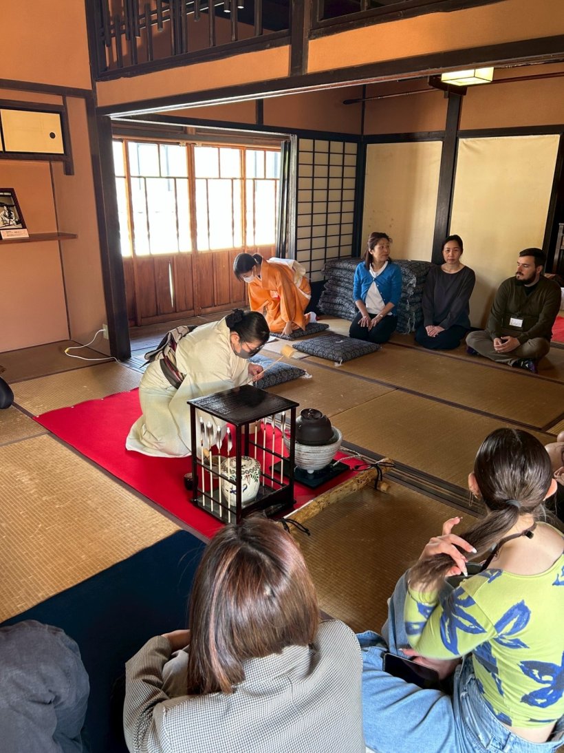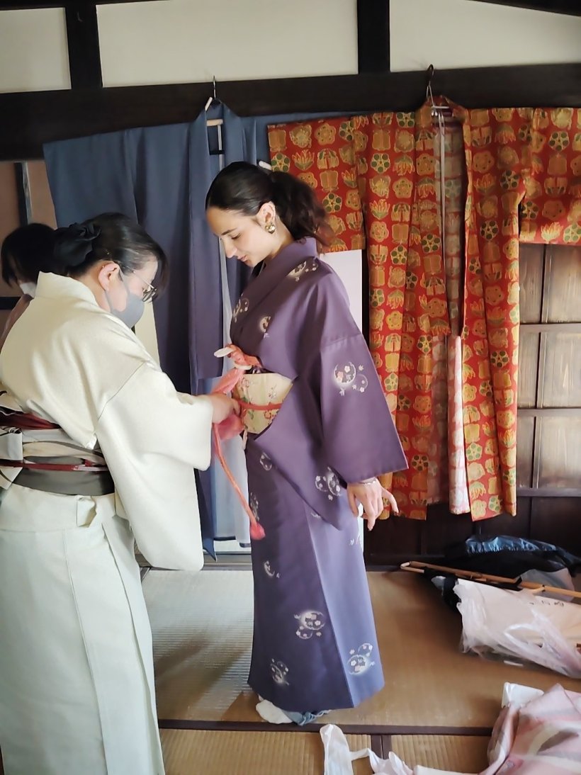 2025年04月28日(月) 活動報告(行事報告) < イベント/お知らせ(ブログ) 日本文化を楽しむ会「茶道体験」4月27日 イベント参加者の出身地は、アメリカ、イギリス、フランス、イタリア、カナダ、オーストラリア、ポーランド、リトアニア、ベトナム、日本と10ケ国を数えた。 前半に先生のお話と説明を聞き、お茶菓子とお茶を頂いた。後半は、先生や門下生の方々が着付けをしてくださり、外国人の着物姿お披露目会となった。予想以上の参加者に加え、参加者の希望に全て気持ちよく引き受けて対応していただいた先生や門下生の方々には感謝に絶えない。