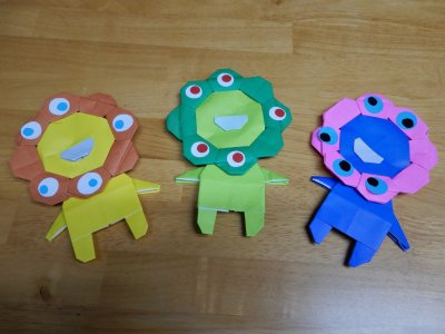 2025年07月14日(月) 活動報告(行事報告) < イベント/お知らせ(ブログ) 「なないろルーツのおへや」7月12日 色違いミャクミャク 来訪者が来るまで折り紙の練習をしました。職員とボランティアで作成しましたが、それぞれの作り手の個性が出てオリジナルのかわいいミャクミャクができました。今回、来訪者はいませんでしたが、関係者一同、来訪者の方がなないろルーツのおへやでゆっくりくつろいで、時には楽しんでもらえるよう、いろいろな活動を考えてお待ちしていますので、ぜひ遊びに来てくださいね。
