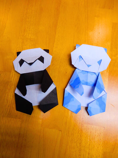 今回は職員とボランティアで子どもも大人も大好きなパンダを折りました。