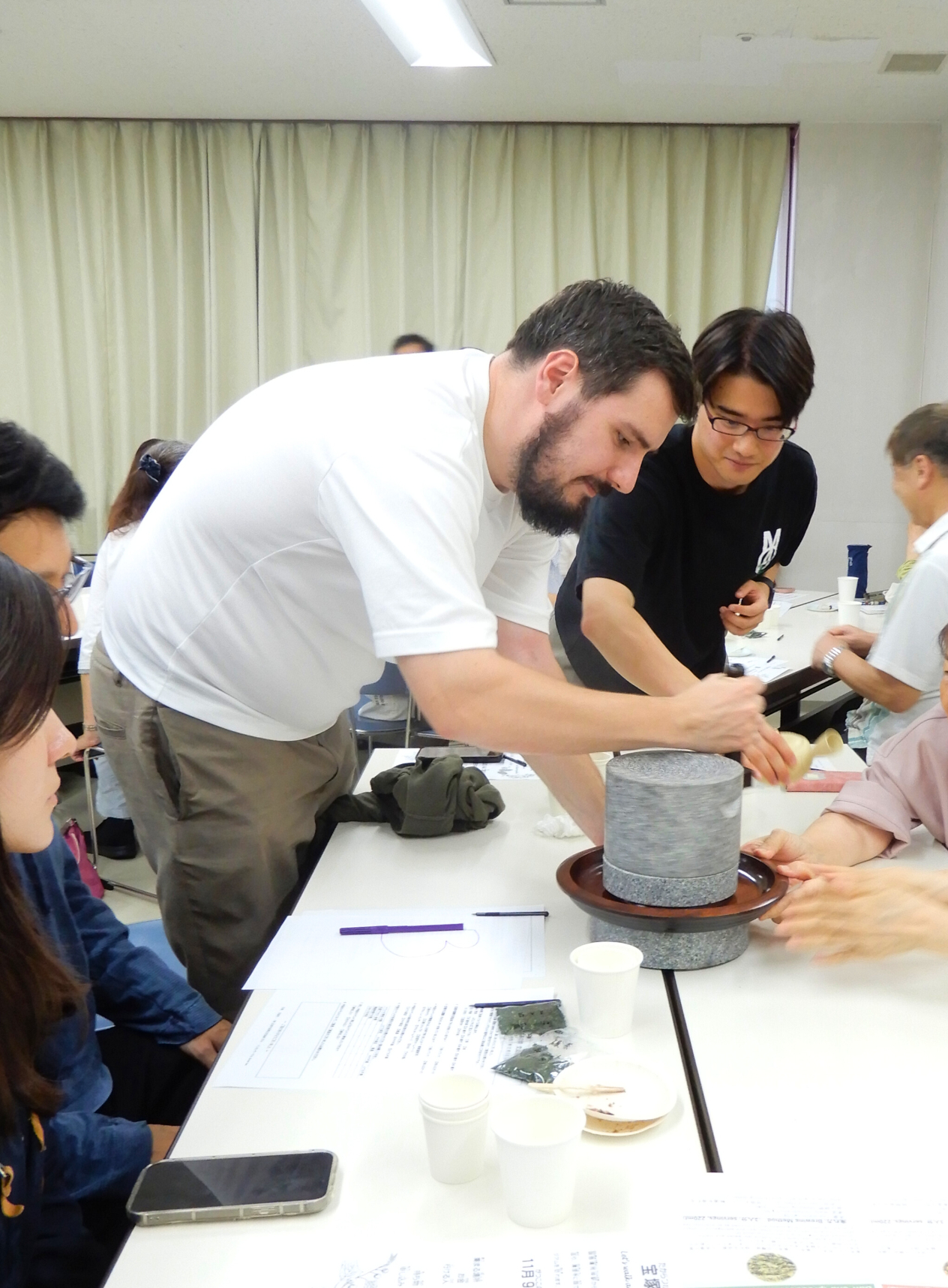 2025年10月10日(金) 活動報告(行事報告) < イベント/お知らせ(ブログ) NEW お茶の間交流会を開催しました 10月5日 海外でも人気の高い「日本茶」をテーマに、国際交流イベントを開催しました。 普段は日本人でもなかなか使う機会のない“石臼”を使って抹茶を挽きながら、参加者同士が英語で会話を楽しみ、日本茶への理解を深める貴重な時間となりました。 また、外国人参加者が自国のお茶文化を紹介する場面もあり、文化の違いを知り、共通点を見つけることで、相互理解の輪が広がりました。 イベント終了後には、参加者に終了証と「3種類の冷茶の作り方」が授与され、今後の暮らしや交流の場でも活かしていただける内容となりました。