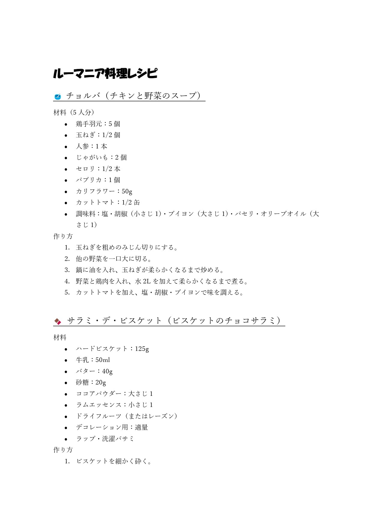 1月31日に開催の宝塚市異文化相互理解事業で、宝塚市民間大使の大佐古シモナさんと作ったルーマニア料理のレシピを掲載します。
